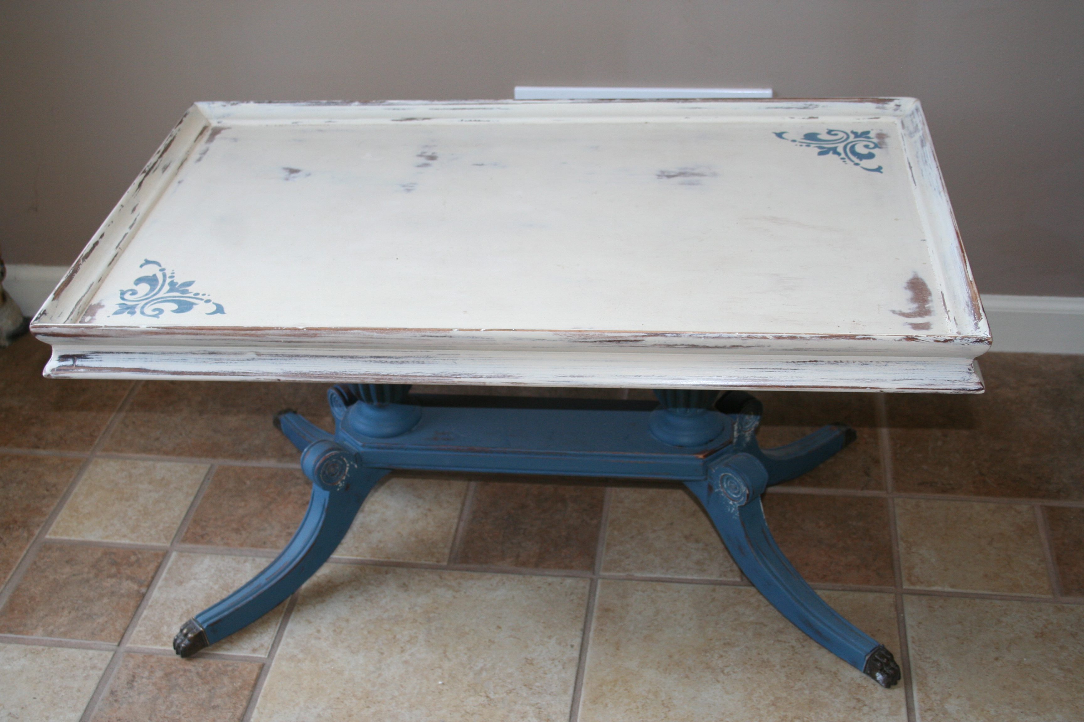 Feeling Blue Published October 16, 2013 at 3456 × 2304 in Tables and chairs « Previous Next » Distressed-finish Coffee Table in Antique Blue/White Finish with Medallion Accent and Claw-foot Table Legs. Like Loading...